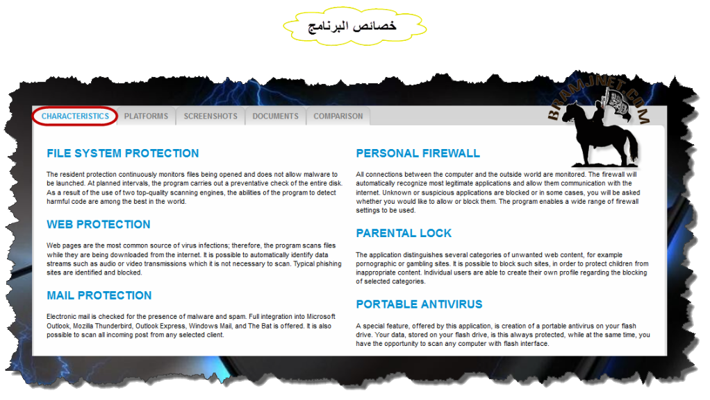 يتمكن من مراقبة مستمرة للملفات التي يتم فتحها في الوقت نفسه يفحص الملفات من البريد الإلكتروني